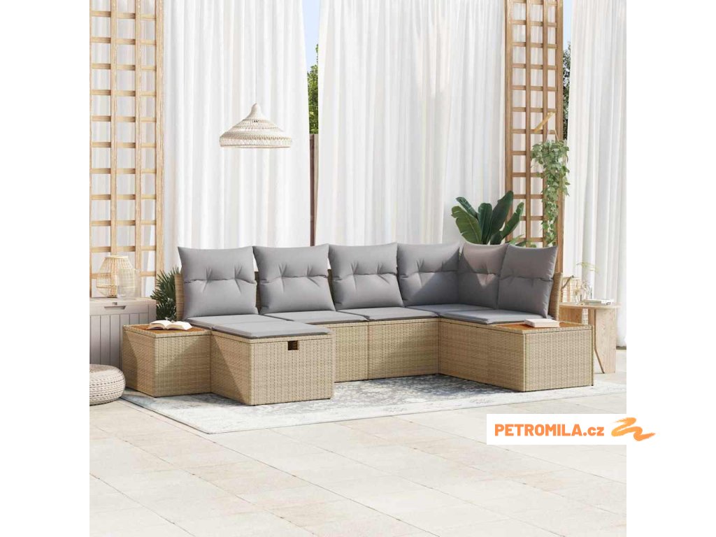 Sada zahradních pohovek s polštářem 7 pcs Béžová Poly ratan