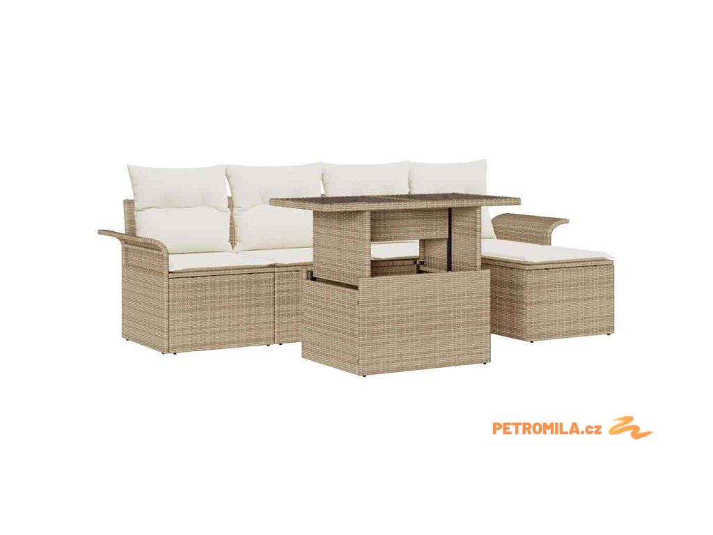 Sada zahradních pohovek s polštářem 8 pcs Béžová Poly ratan