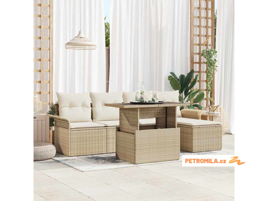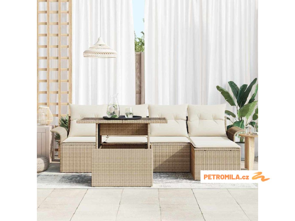 Sada zahradních pohovek s polštářem 6 pcs Béžová polyratan