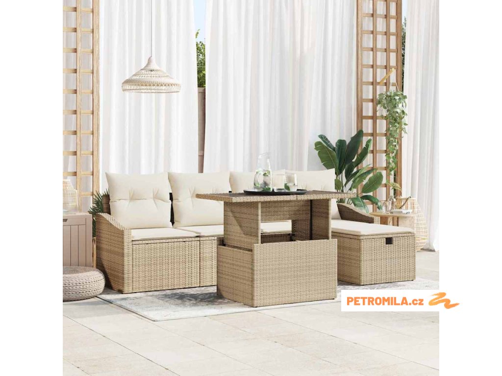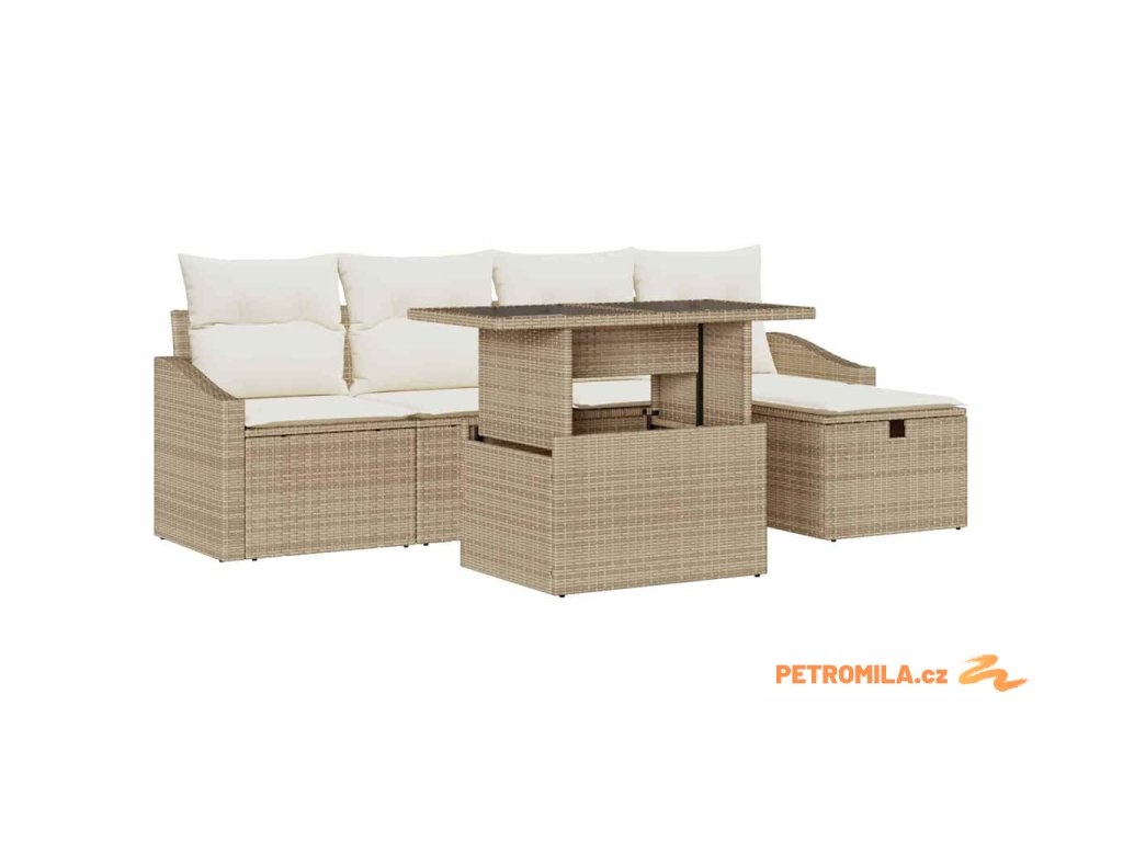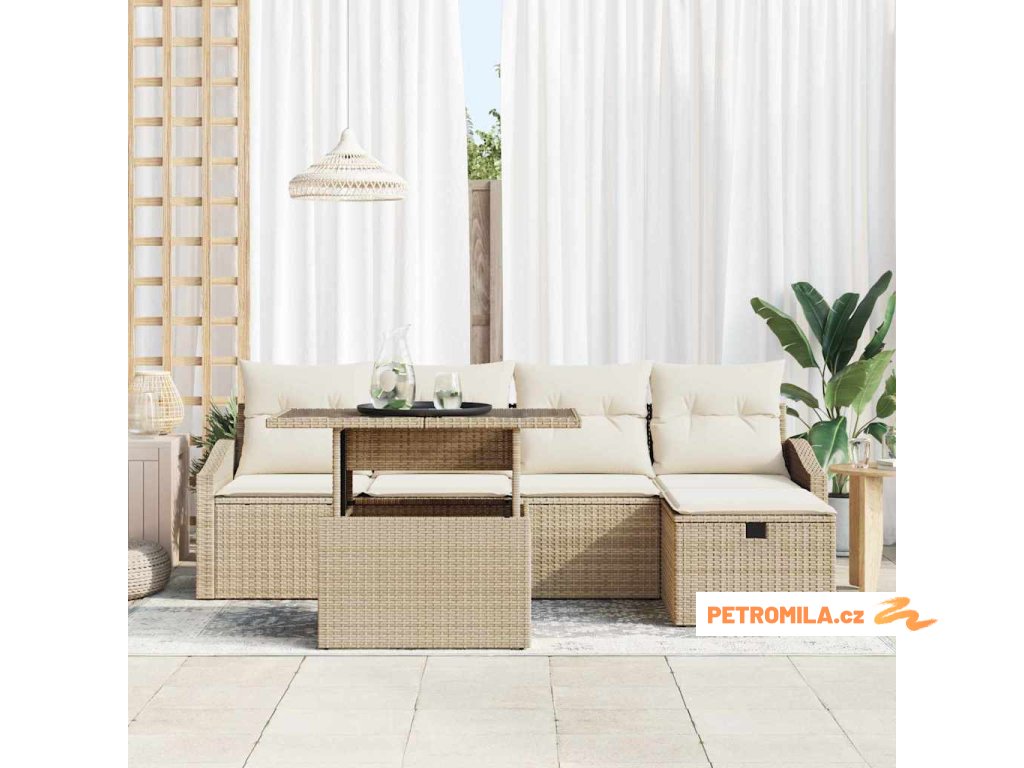 Sada zahradních pohovek s polštářem 6 pcs Béžová Poly ratan