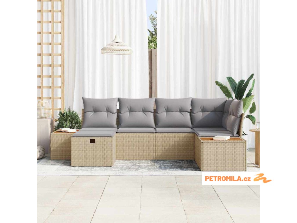 Sada zahradních pohovek s polštářem 6 pcs Béžová polyratan