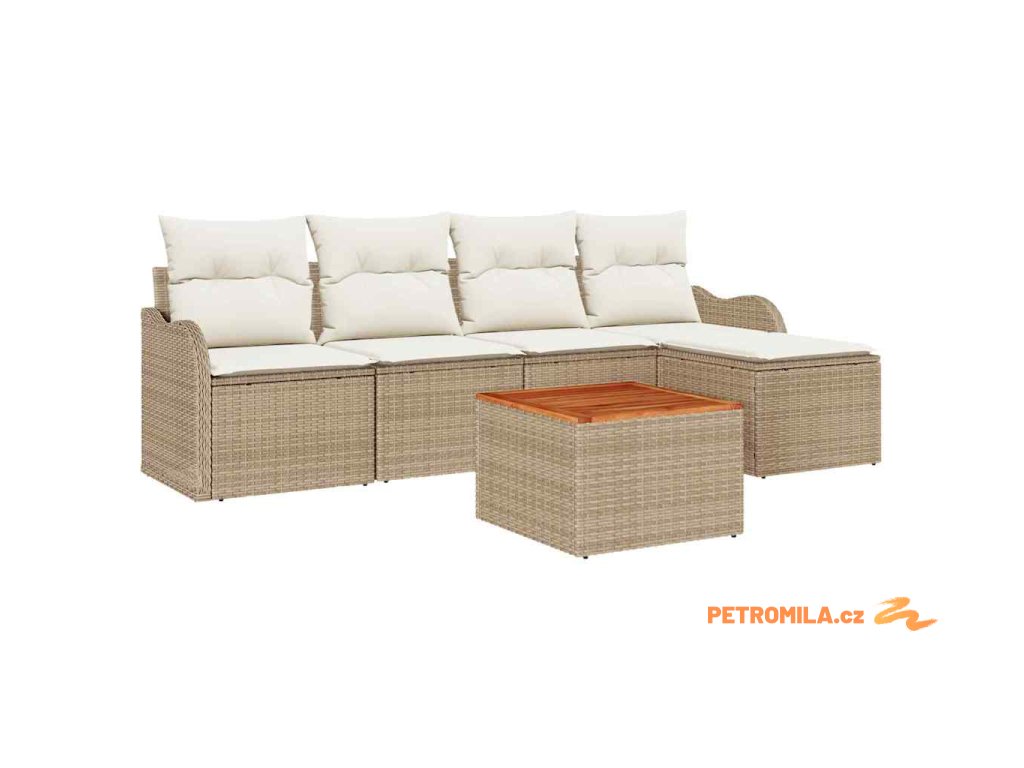 Sada zahradních pohovek s polštářem 6 pcs Béžová polyratan
