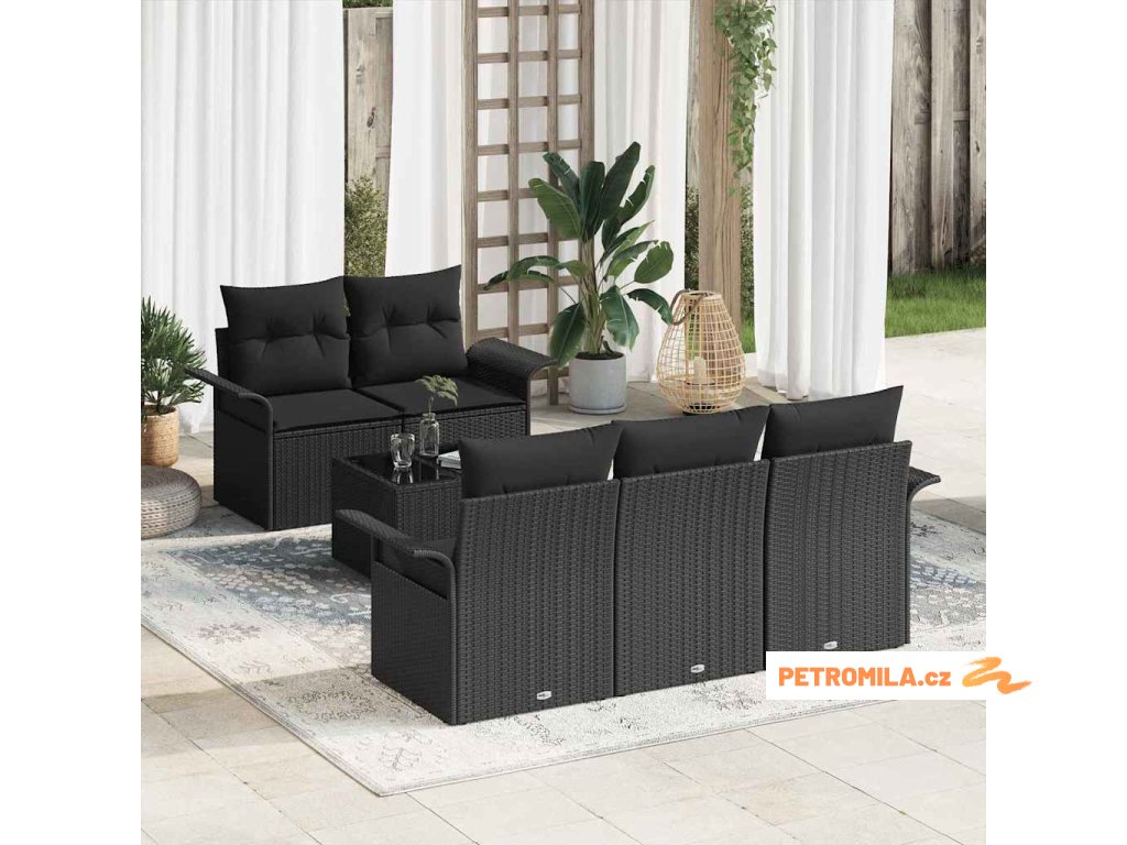 Sada zahradních pohovek s polštářem 6 pcs Černá 55 x 55 x 37 cm