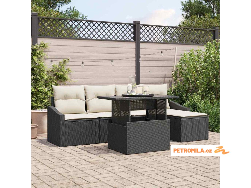 Sada zahradních pohovek s polštářem 6 pcs Černá a krémová