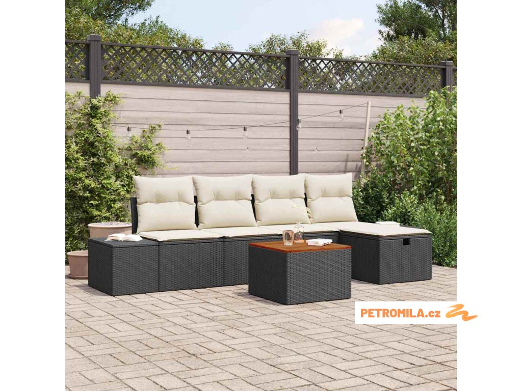 Sada zahradních pohovek s polštářem 6 pcs Černá polyratan