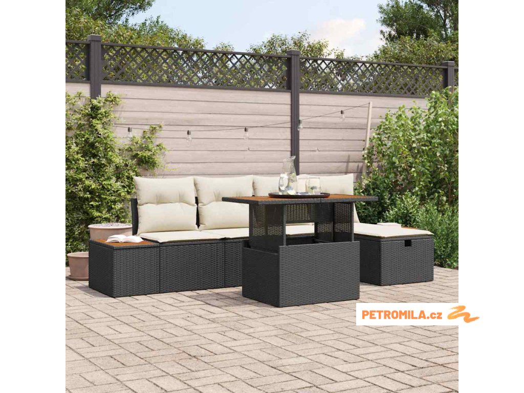 Sada zahradních pohovek s polštářem 6 pcs Černá polyratan