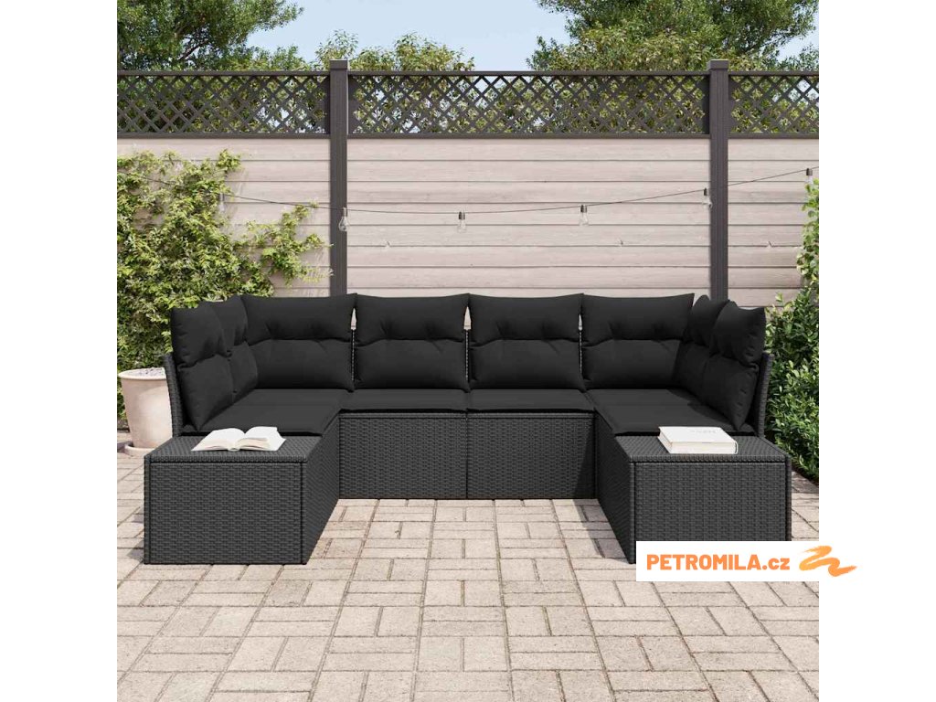 Sada zahradních pohovek s polštářem 6 pcs Černá polyratan