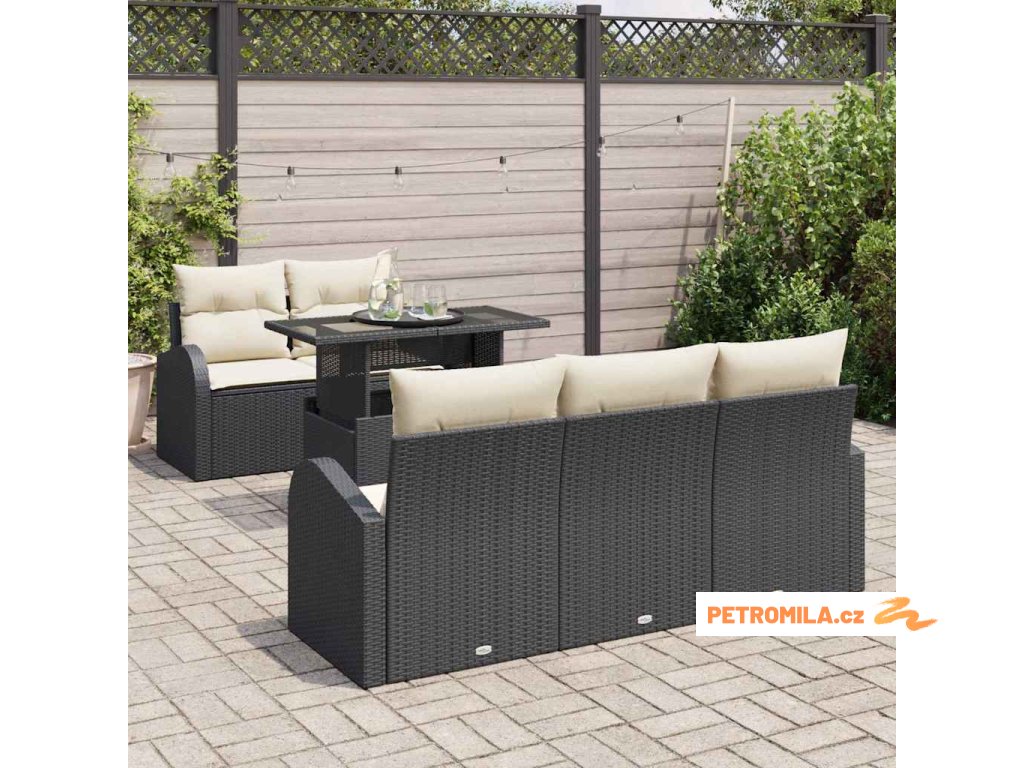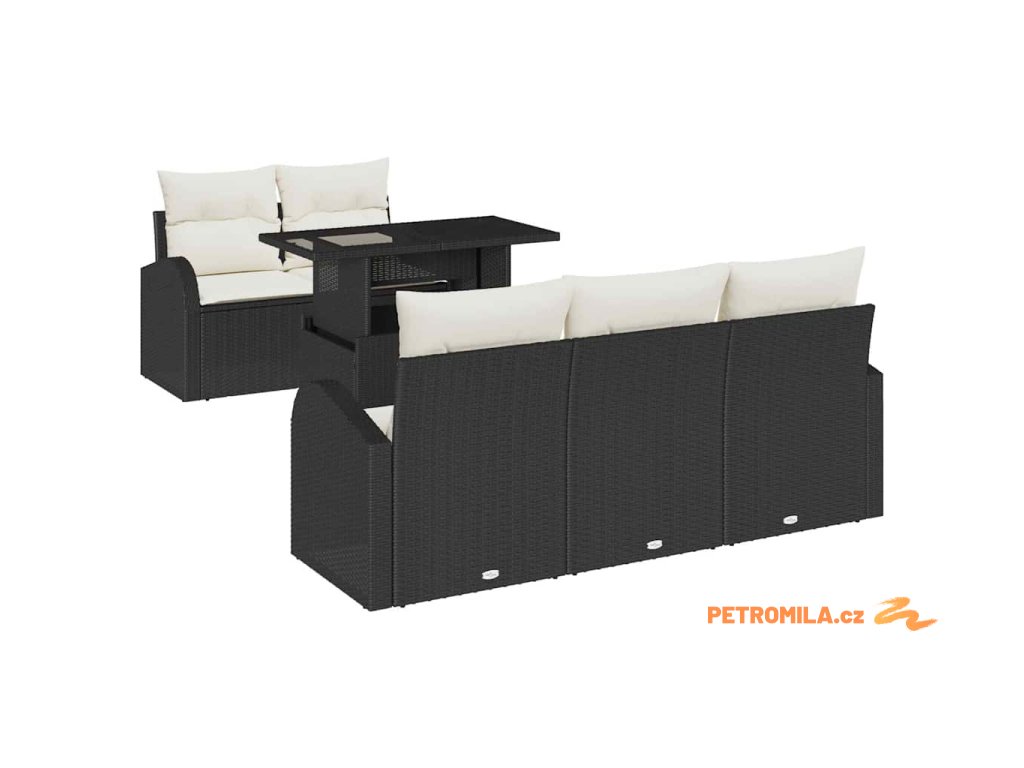 Sada zahradních pohovek s polštářem 6 pcs Černá Poly Ratan