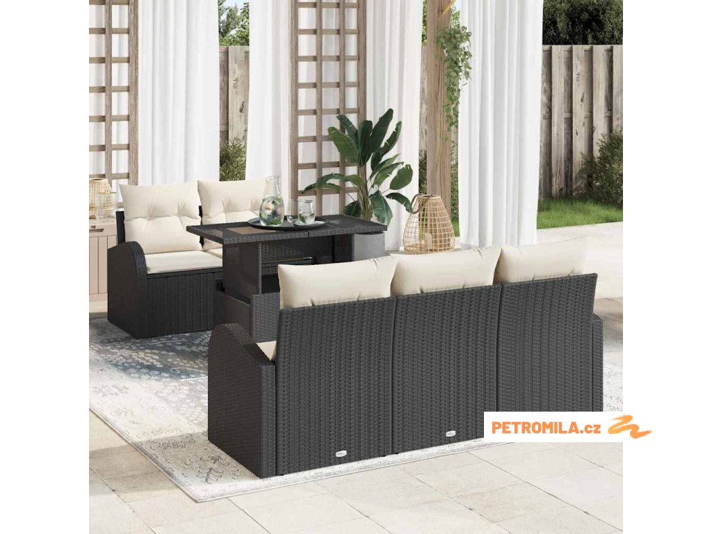 Sada zahradních pohovek s polštářem 6 pcs Černá polyratan