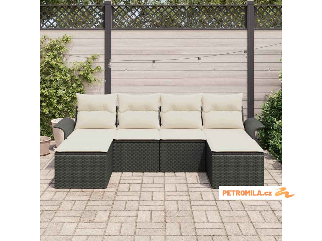 Sada zahradních pohovek s polštářem 6 pcs Černá polyratan