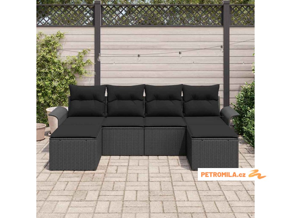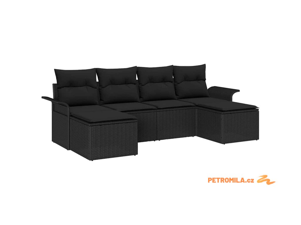 Sada zahradních pohovek s polštářem 6 pcs Černá polyratan