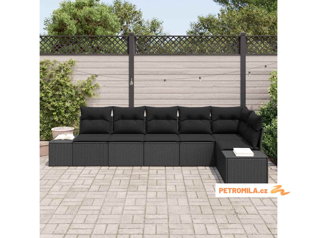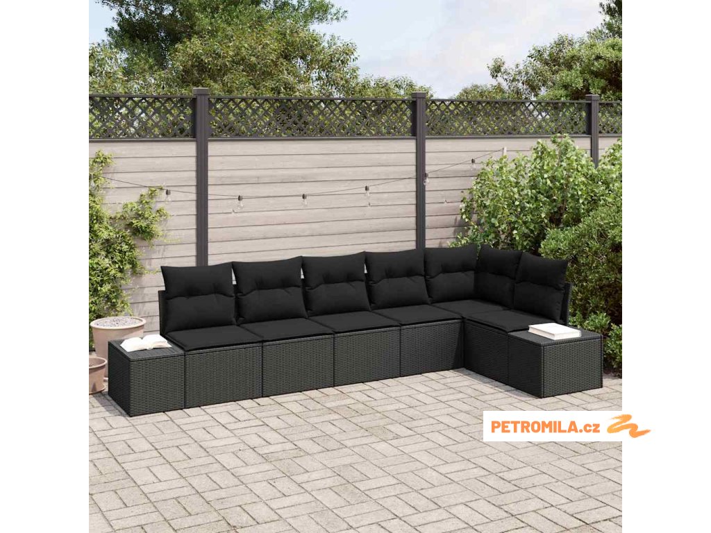 Sada zahradních pohovek s polštářem 6 pcs Černá polyratan