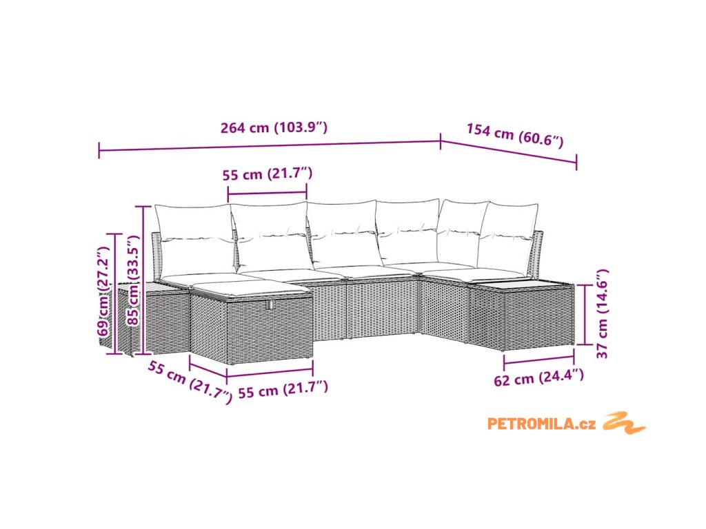 - Modulární přizpůsobitelnost: Využijte všechno, co vaše venkovní místo nabízí, s modulárními díly, které snadno přizpůsobíte pro různé příležitosti. Sestavte si pohodlné lounge místo nebo prostorný set pro více lidí.
