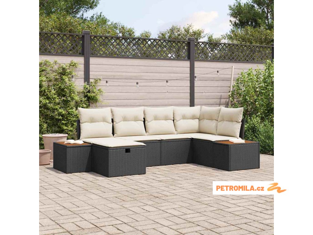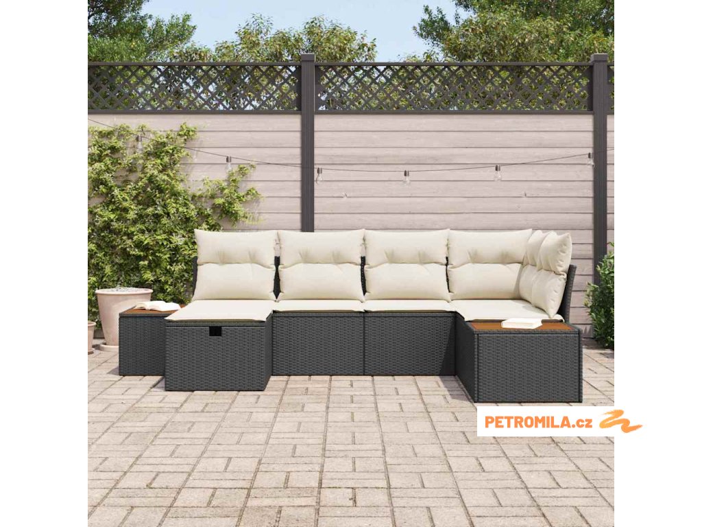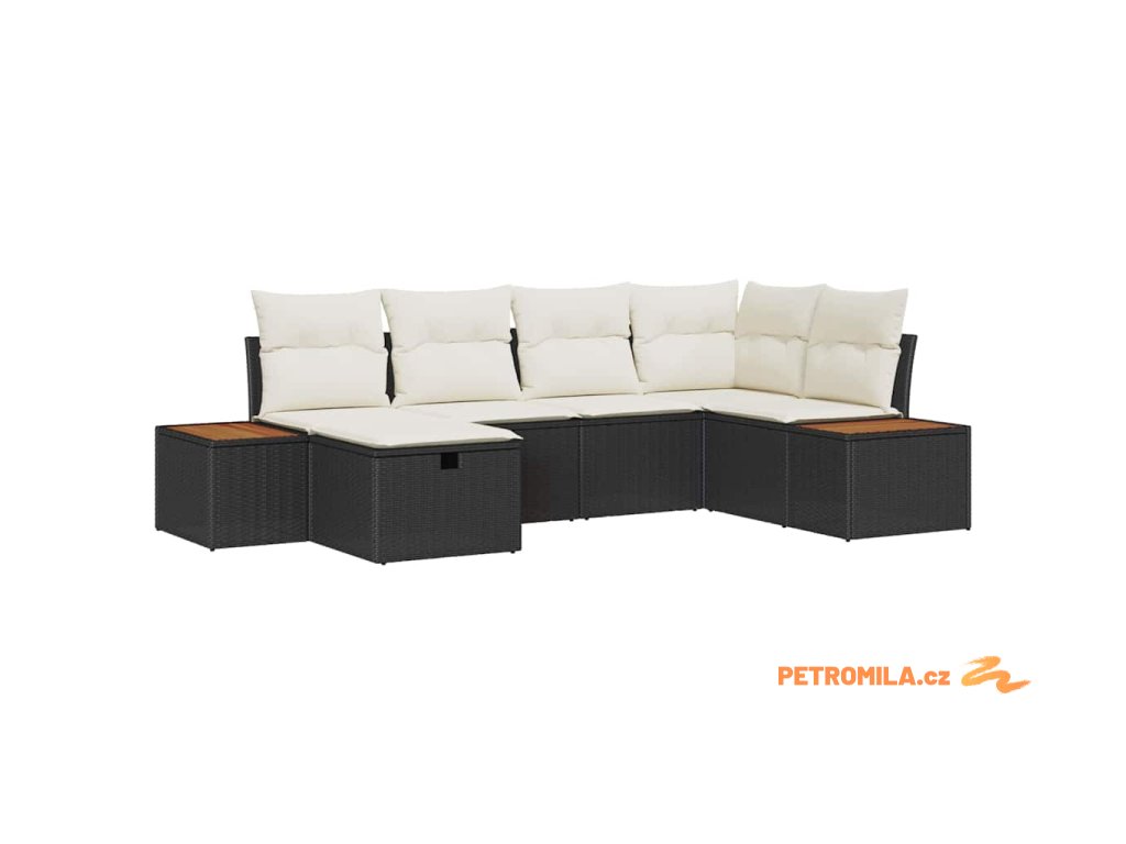 Sada zahradních pohovek s polštářem 6 pcs Černá Poly Ratan