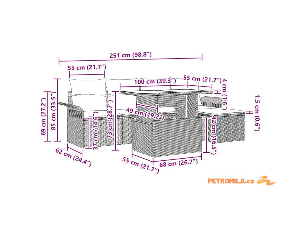 - 1 x podnožka: 55 x 55 x 37 cm (ŠxHxV)
