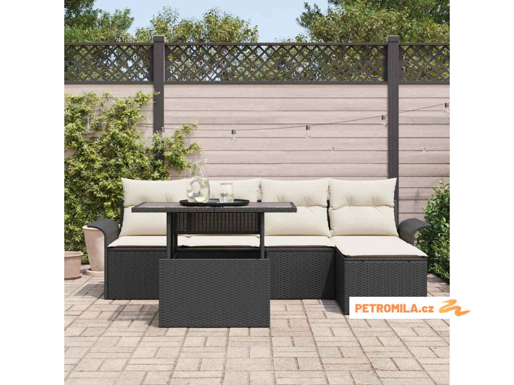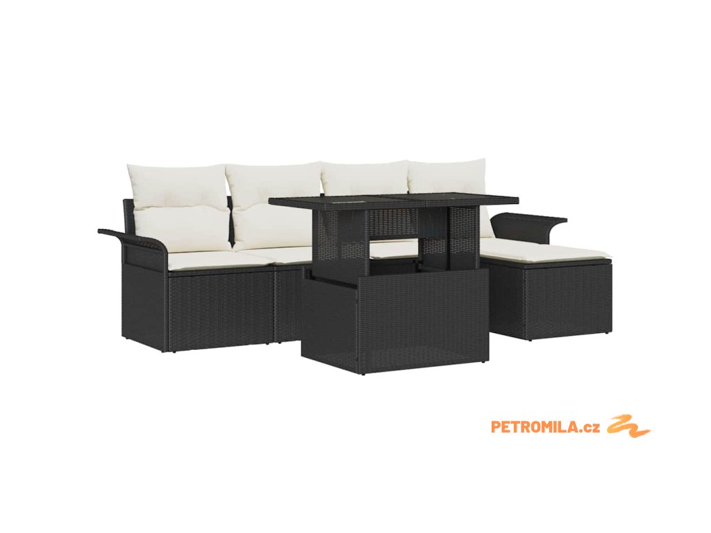 Sada zahradních pohovek s polštářem 6 pcs Černá polyratan