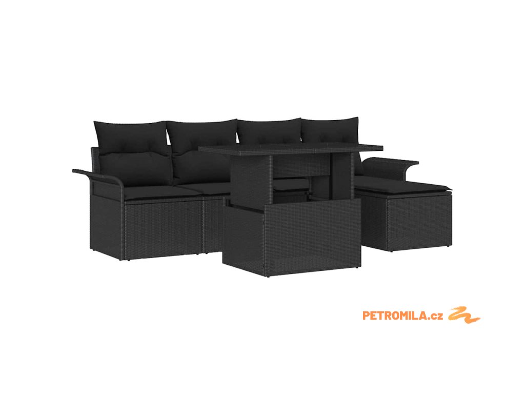 Sada zahradních pohovek s polštářem 6 pcs Černá polyratan
