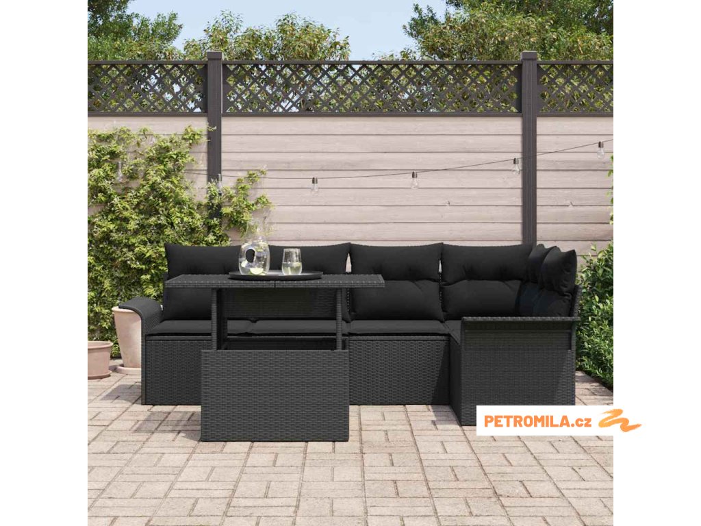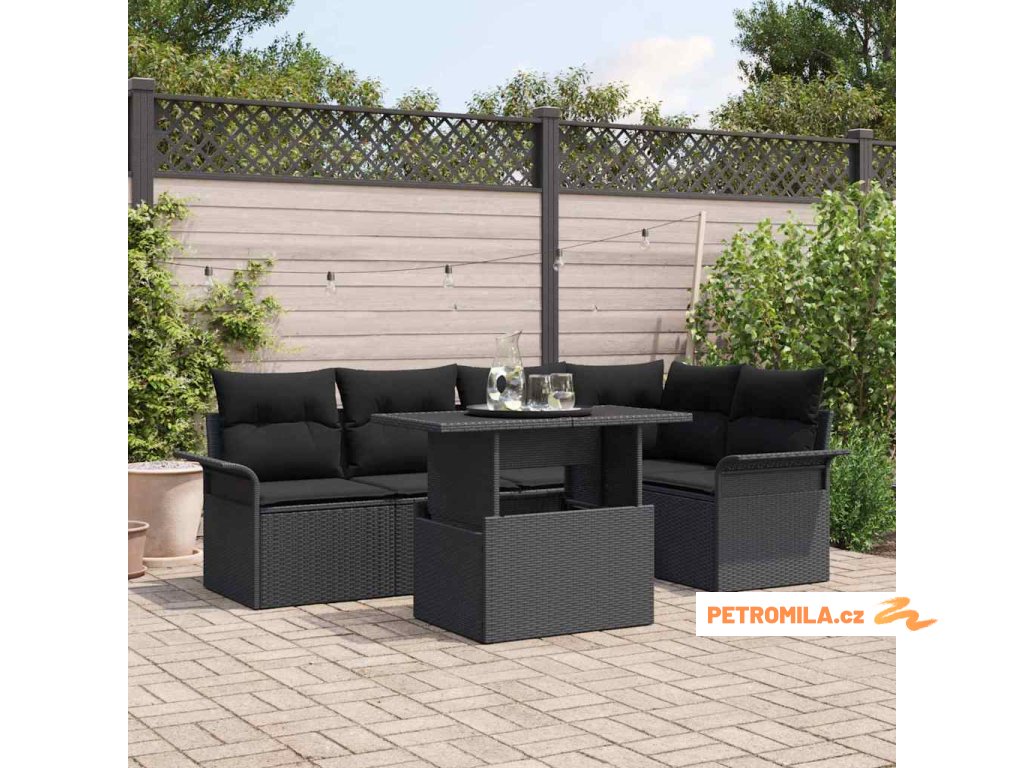 Sada zahradních pohovek s polštářem 6 pcs Černá polyratan