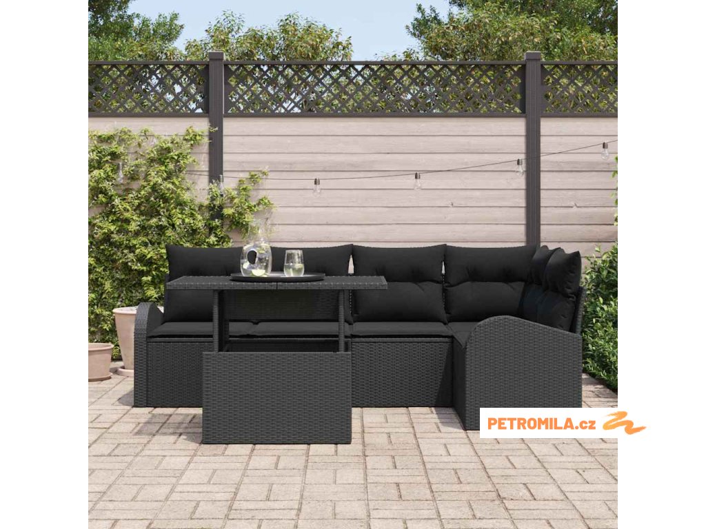 Sada zahradních pohovek s polštářem 6 pcs Černá polyratan