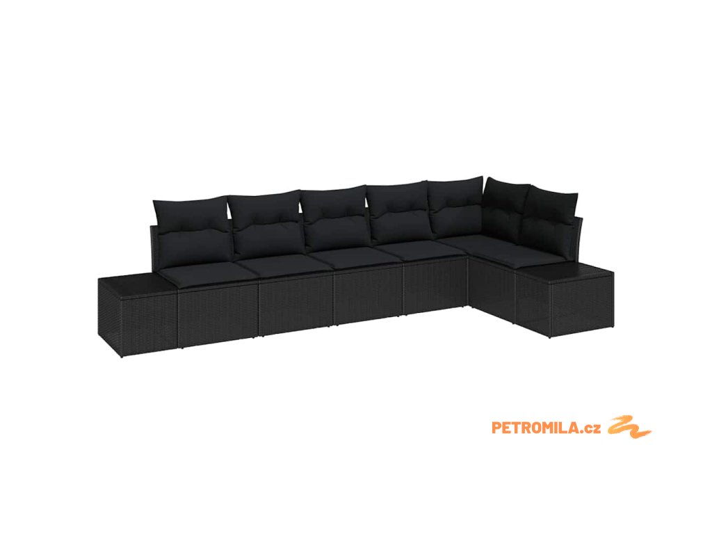 Sada zahradních pohovek s polštářem 6 pcs Černá Poly Ratan