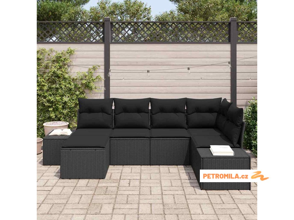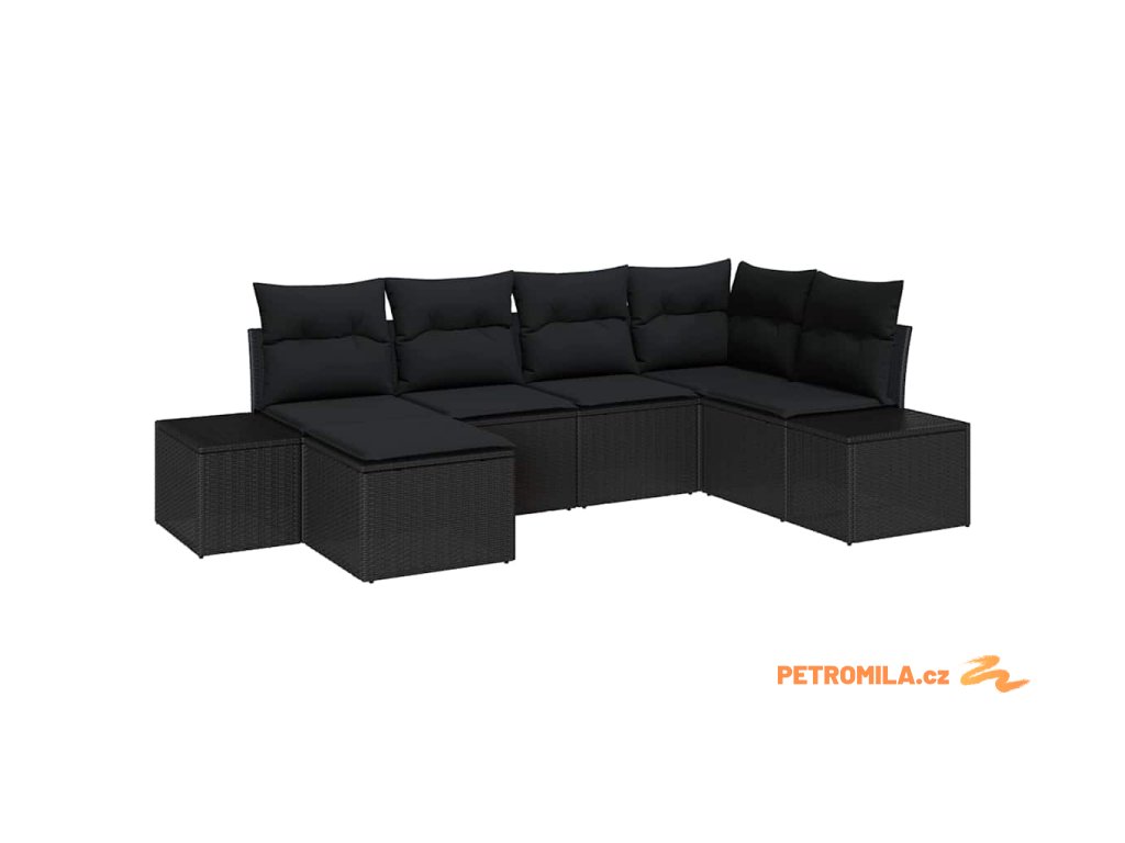 Sada zahradních pohovek s polštářem 6 pcs Černá Poly Ratan