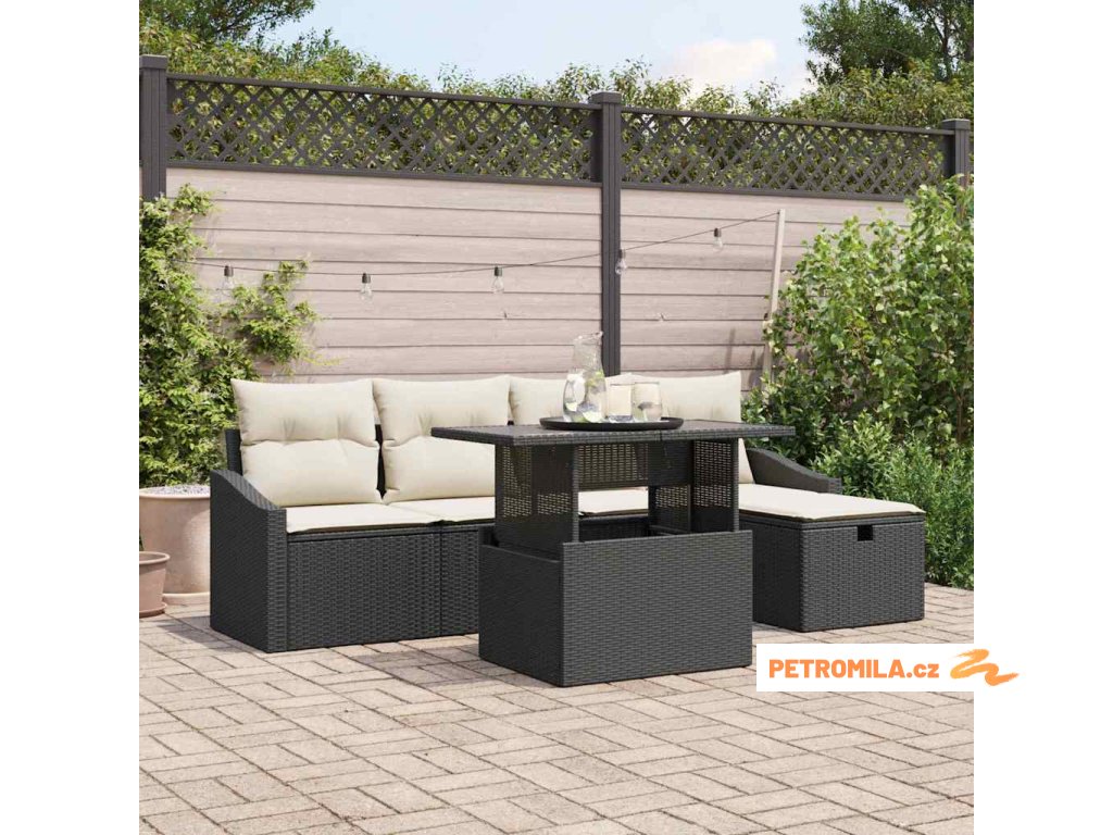 Sada zahradních pohovek s polštářem 6 pcs Černá Poly Ratan