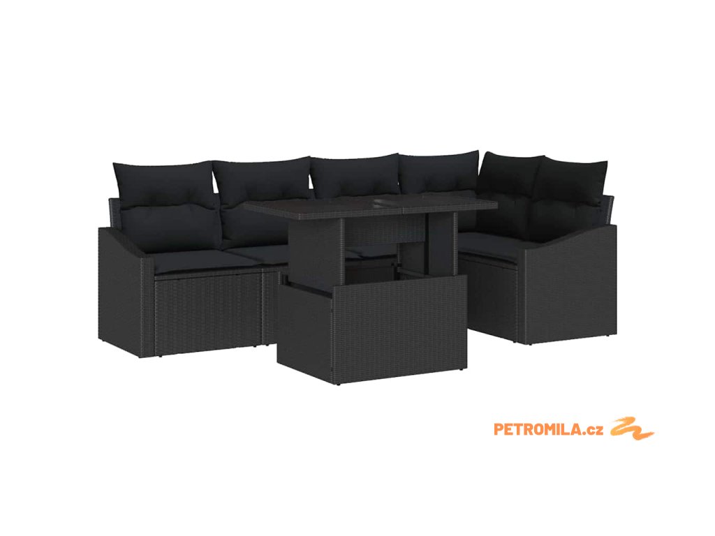 Sada zahradních pohovek s polštářem 6 pcs Černá polyratan