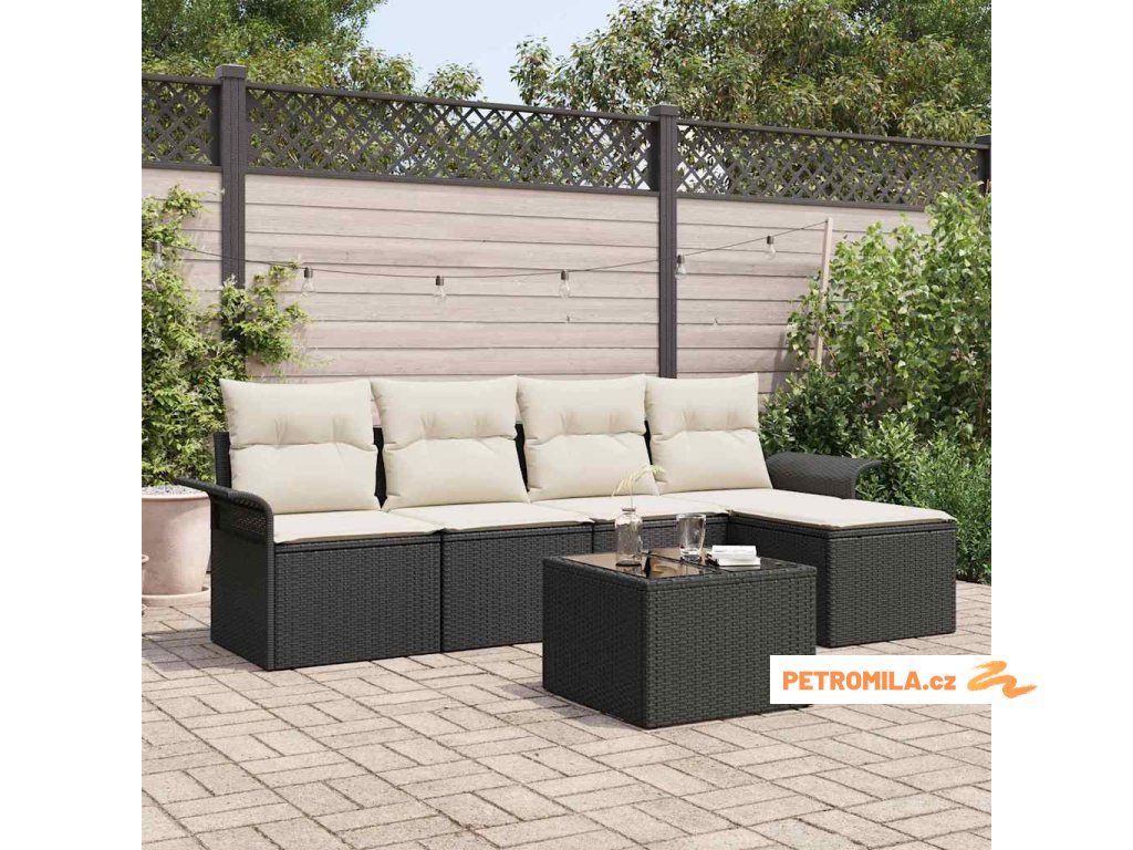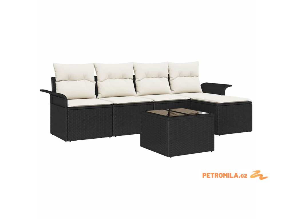 Sada zahradních pohovek s polštářem 6 pcs Černá polyratan