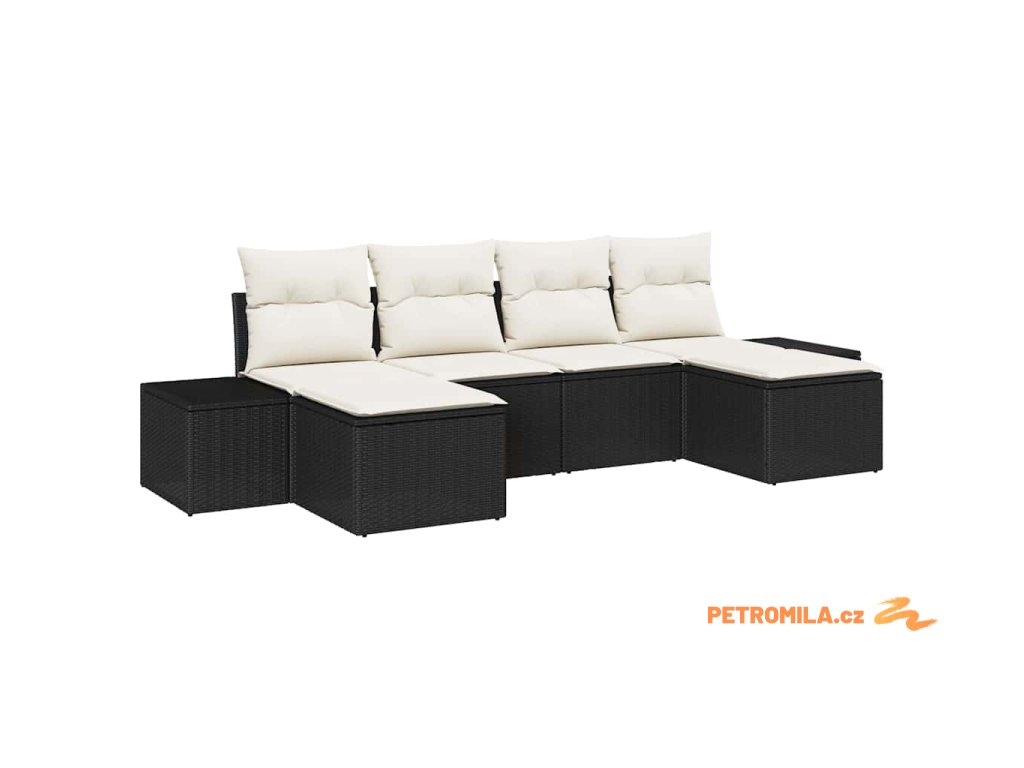 Sada zahradních pohovek s polštářem 6 pcs Černá polyratan
