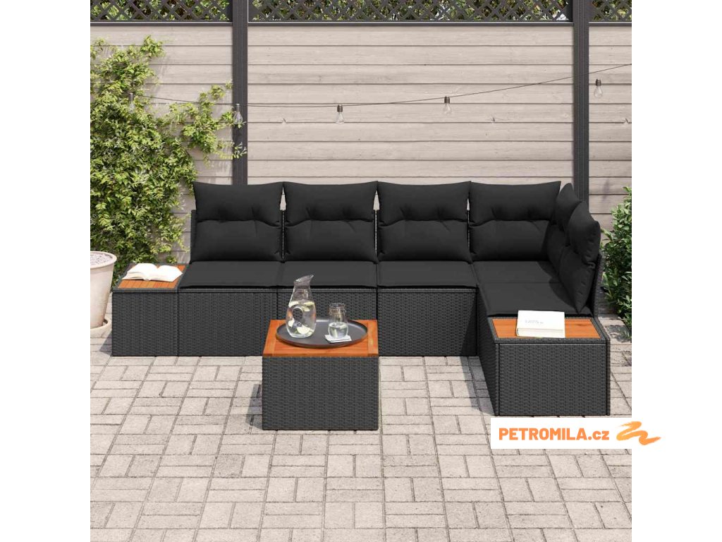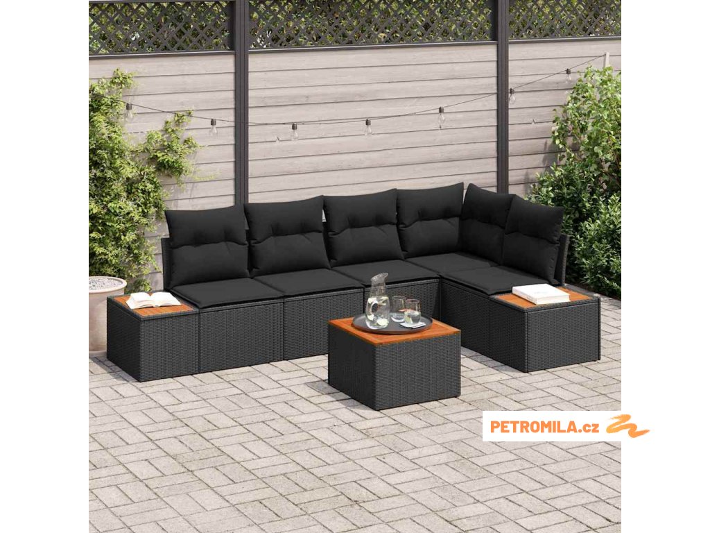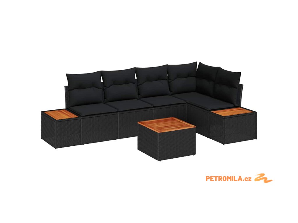 Sada zahradních pohovek s polštářem 6 pcs Černá polyratan