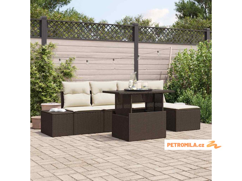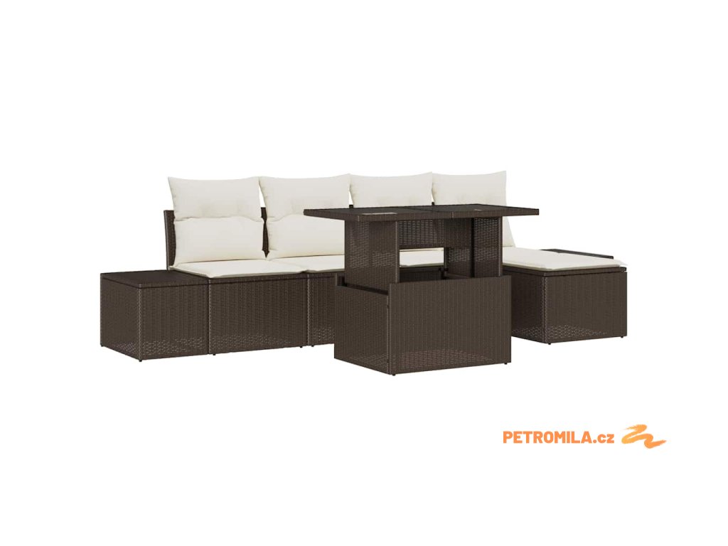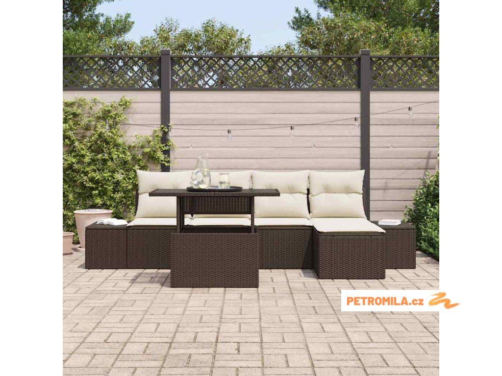 Sada zahradních pohovek s polštářem 6 pcs Hnědá a krémová