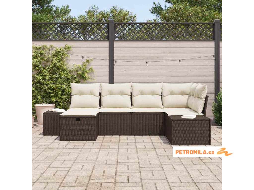 Sada zahradních pohovek s polštářem 6 pcs Hnědá polyratan