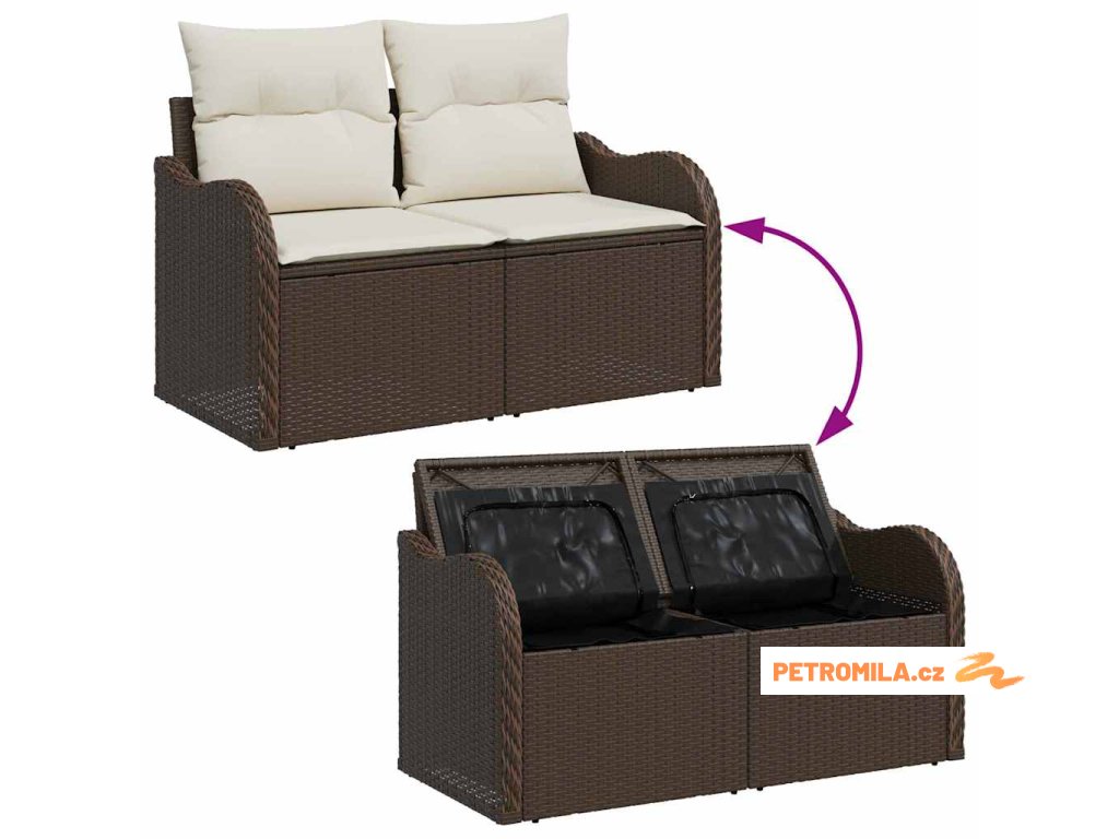 Sada zahradních pohovek s polštářem 6 pcs Hnědá Polyratan
