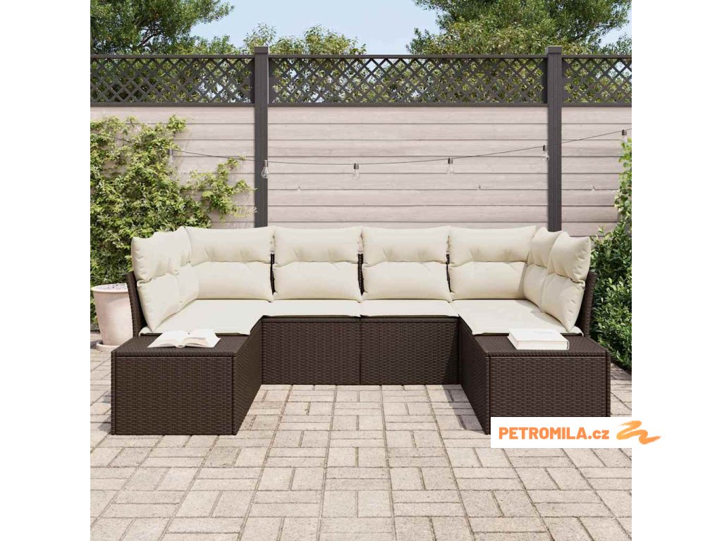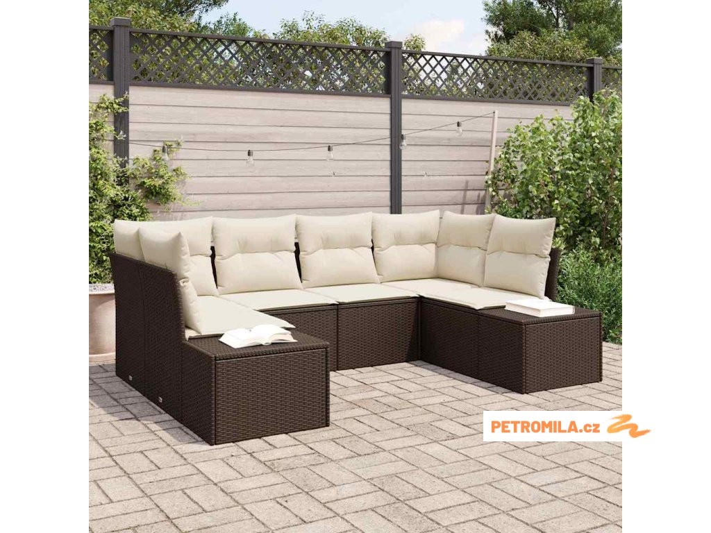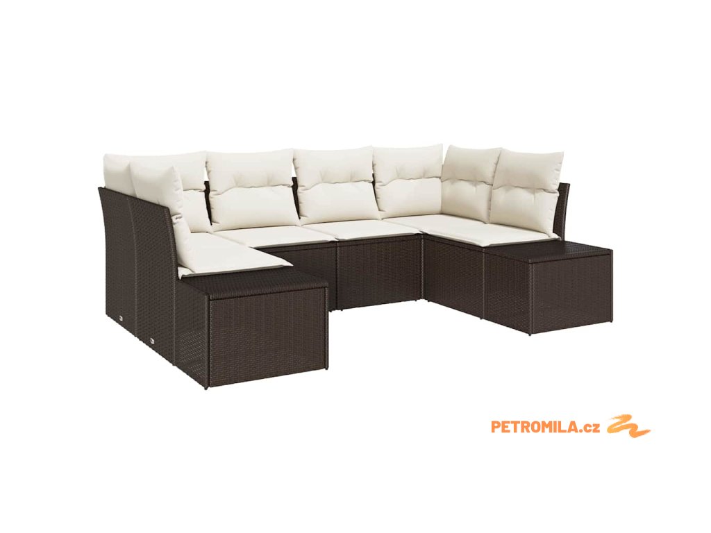 Sada zahradních pohovek s polštářem 7 pcs Hnědá Poly ratan
