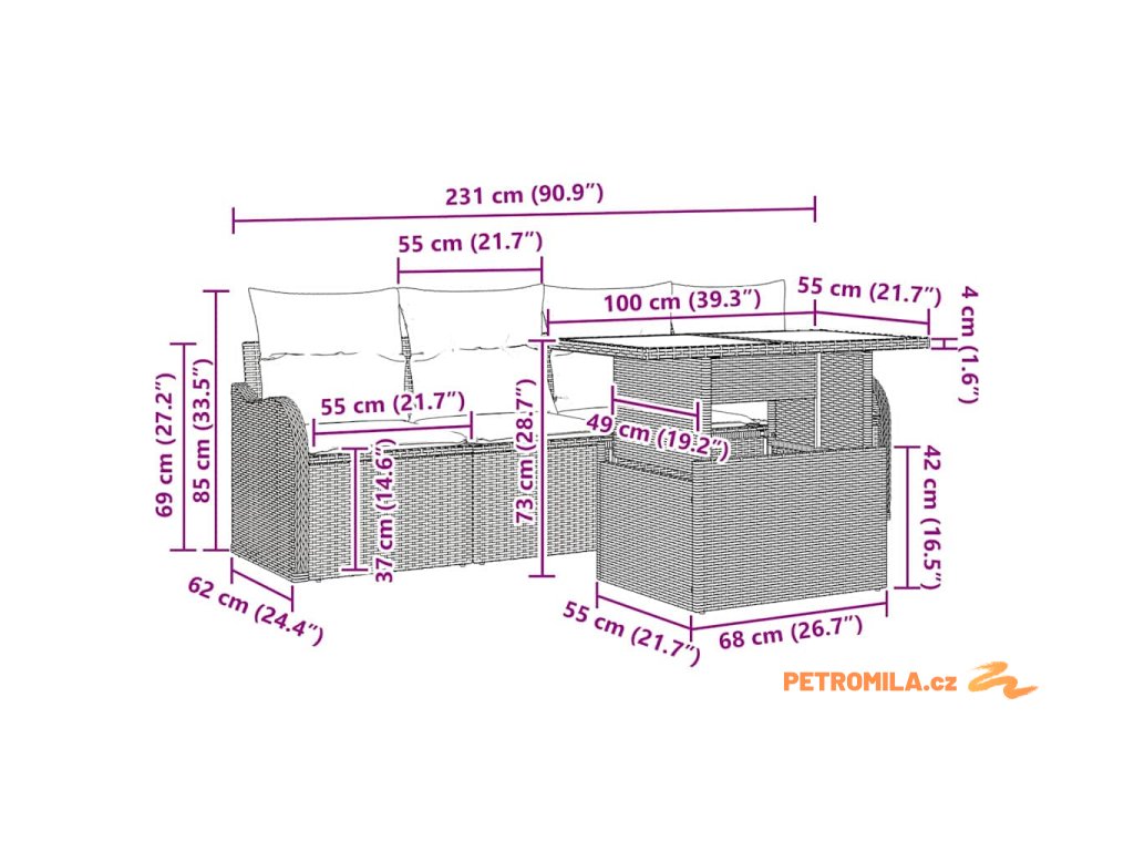 - 1 x podnožka: 55×55×40 cm (Š×H×V)