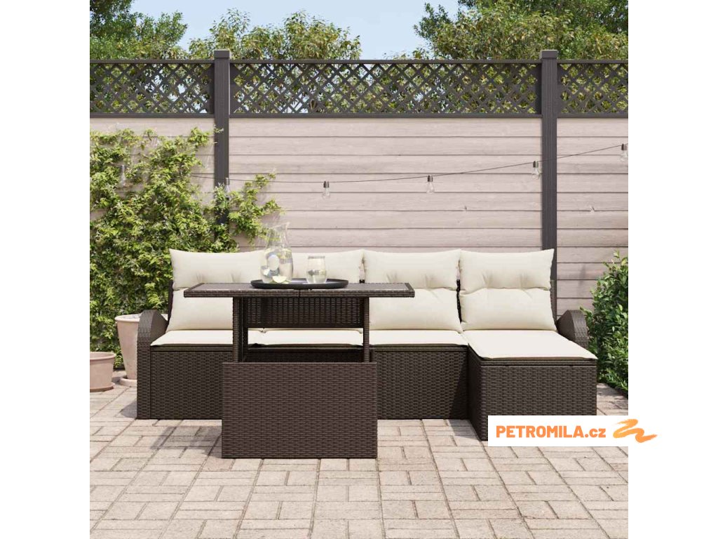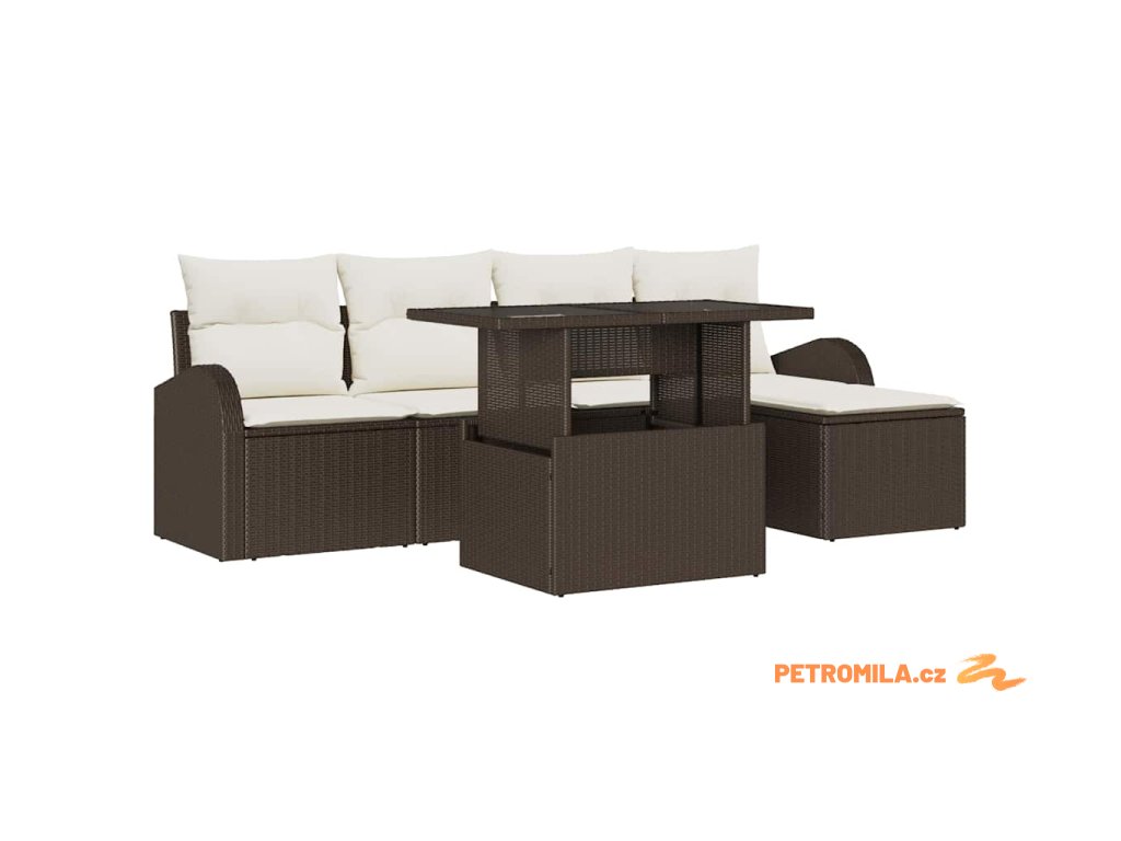 Sada zahradních pohovek s polštářem 6 pcs Hnědá polyratan