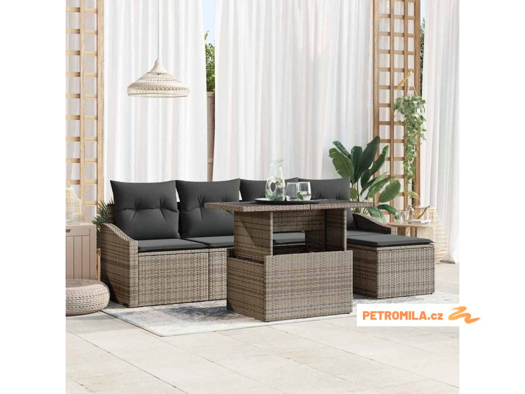 Sada zahradních pohovek s polštářem 6 pcs Šedá