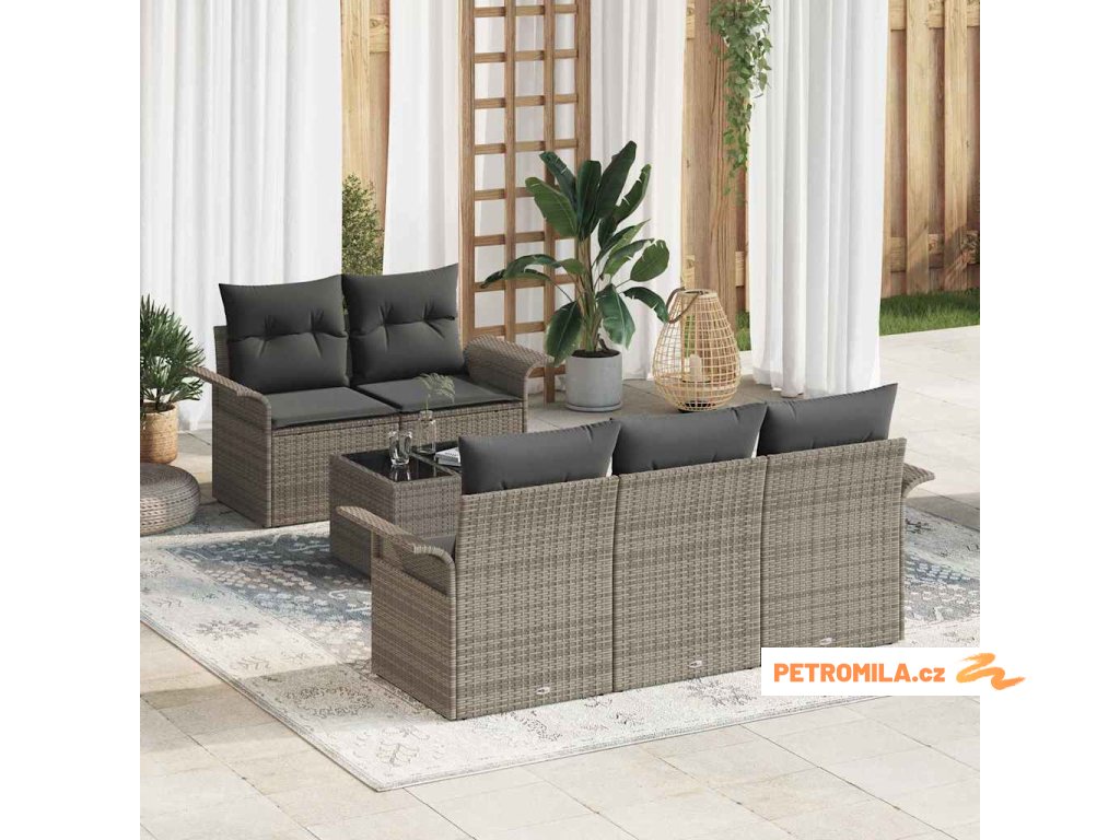 Sada zahradních pohovek s polštářem 6 pcs Šedá 55 x 55 x 37 cm