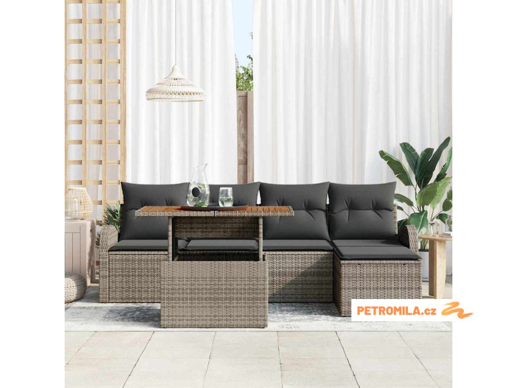 Sada zahradních pohovek s polštářem 6 pcs Šedá