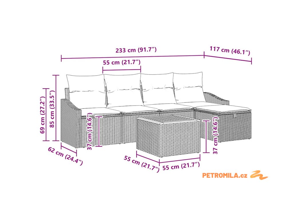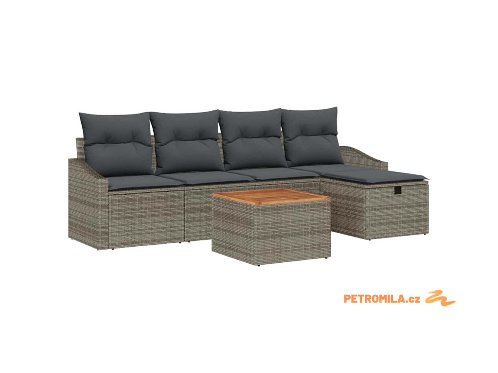 Sada zahradních pohovek s polštářem 6 pcs Šedá Poly ratan