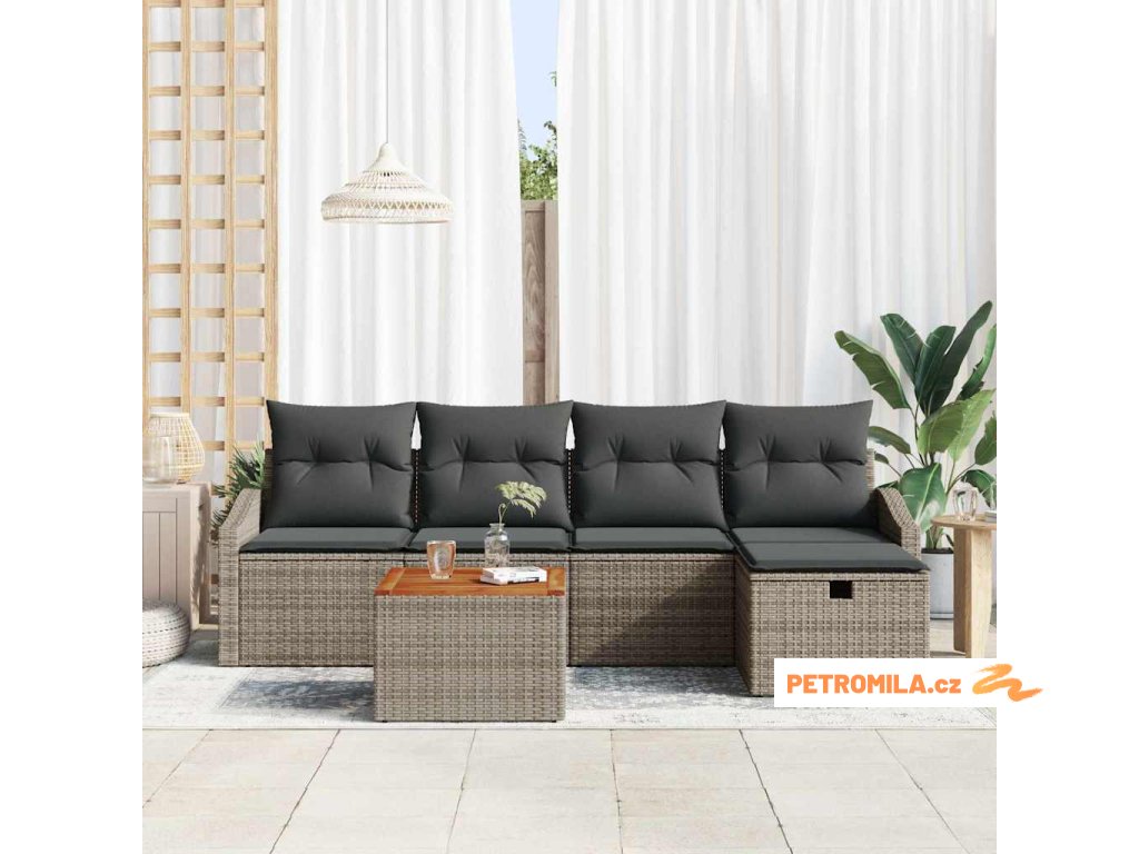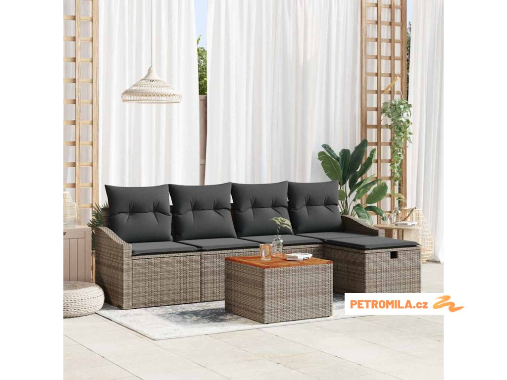 6dílná zahradní sedací souprava a podušky světle šedá polyratan