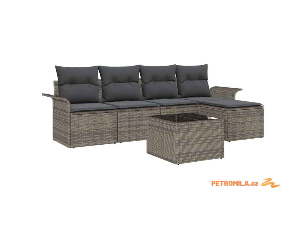 Sada zahradních pohovek s polštářem 6 pcs Šedá Poly ratan