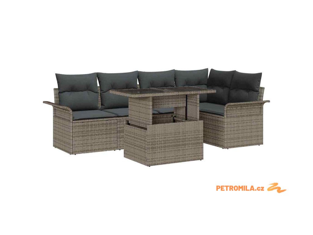 Sada zahradních pohovek s polštářem 6 pcs Šedá polyratan