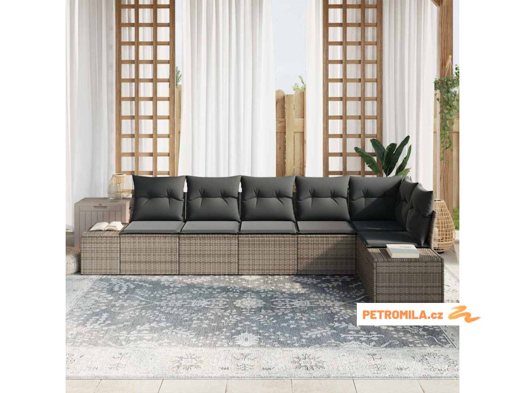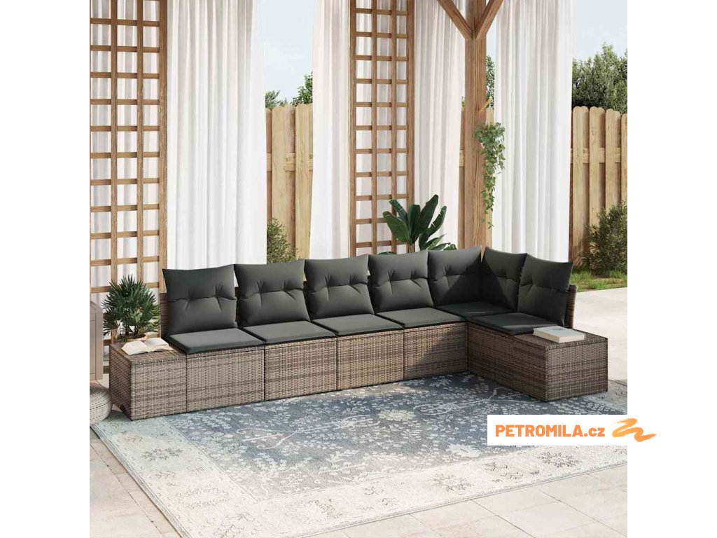 Sada zahradních pohovek s polštářem 6 pcs Šedá polyratan