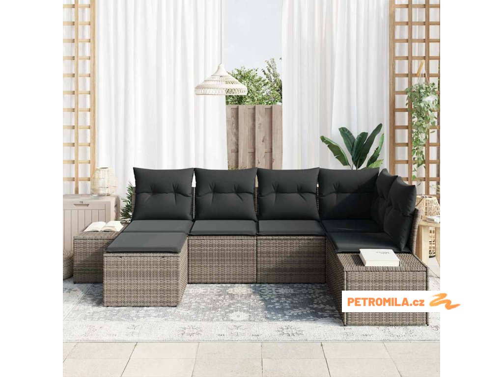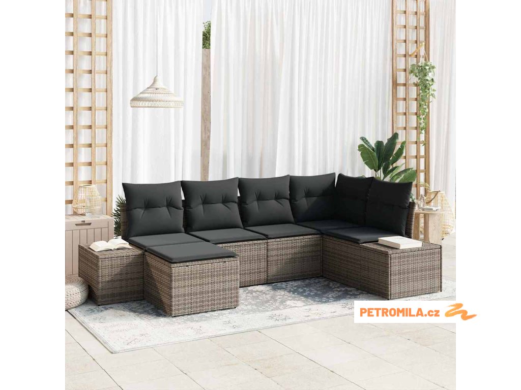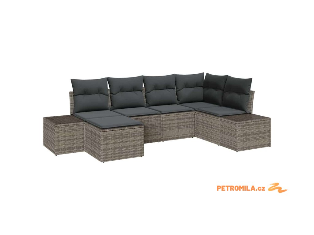 Sada zahradních pohovek s polštářem 6 pcs Šedá polyratan