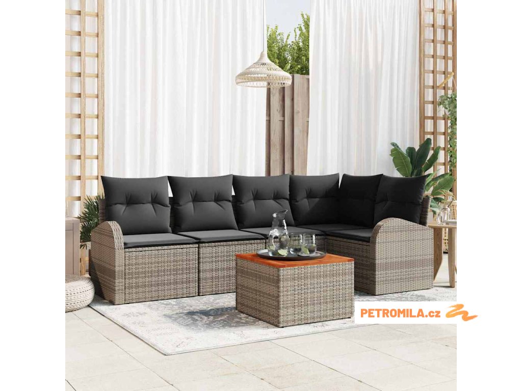 Sada zahradních pohovek s polštářem 6 pcs Šedá polyratan
