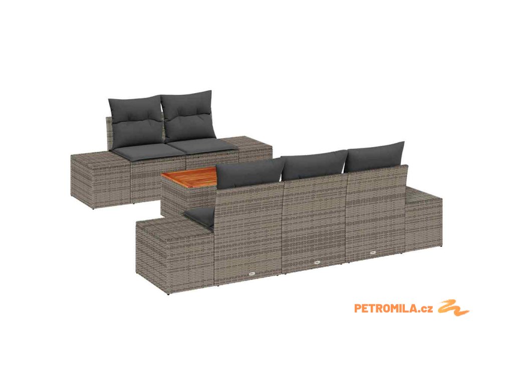 Sada zahradních pohovek s polštářem 6 pcs Šedá polyratan