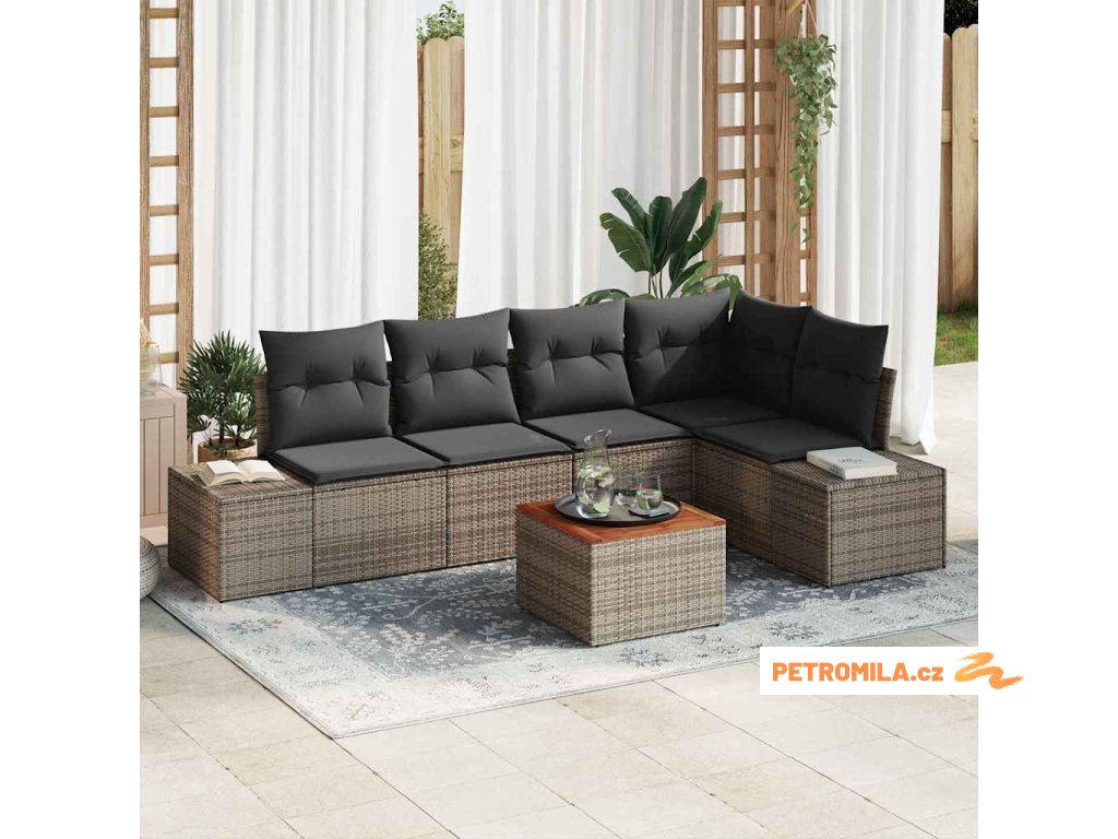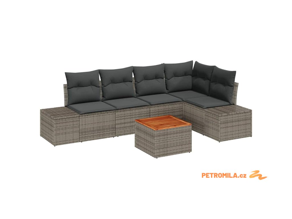 Sada zahradních pohovek s polštářem 6 pcs Šedá polyratan