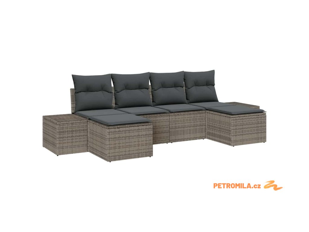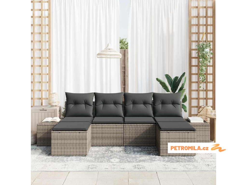 Sada zahradních pohovek s polštářem 6 pcs Šedá polyratan