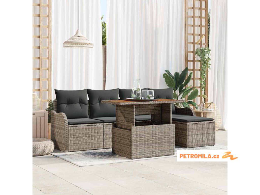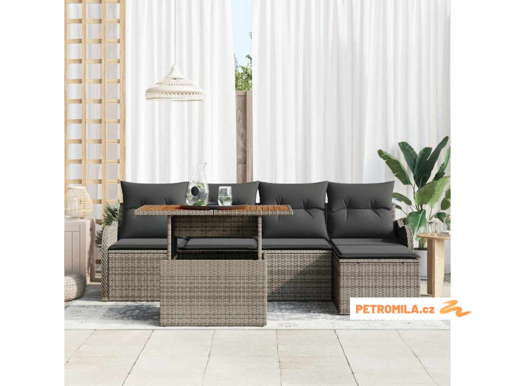 Sada zahradních pohovek s polštářem 6 pcs Šedá polyratan